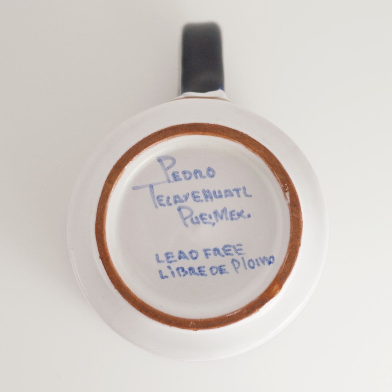 メキシコ、プエブラのタラベラ焼きハンドメイドマグカップ。