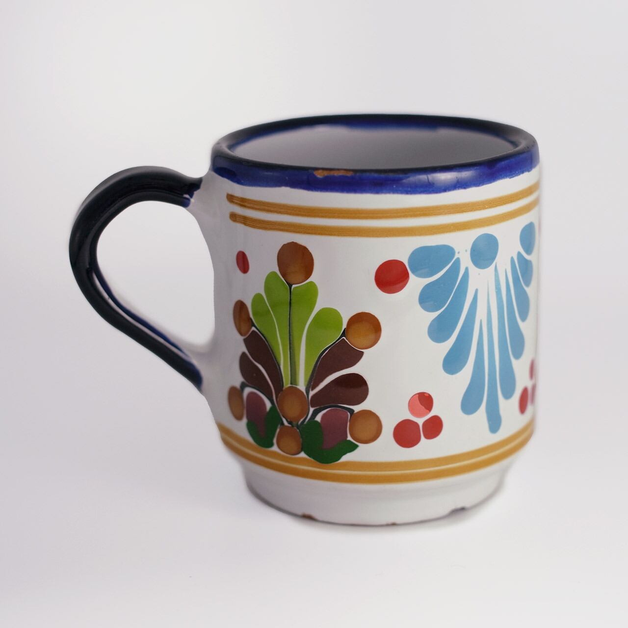 メキシコ、プエブラのタラベラ焼きハンドメイドマグカップ。